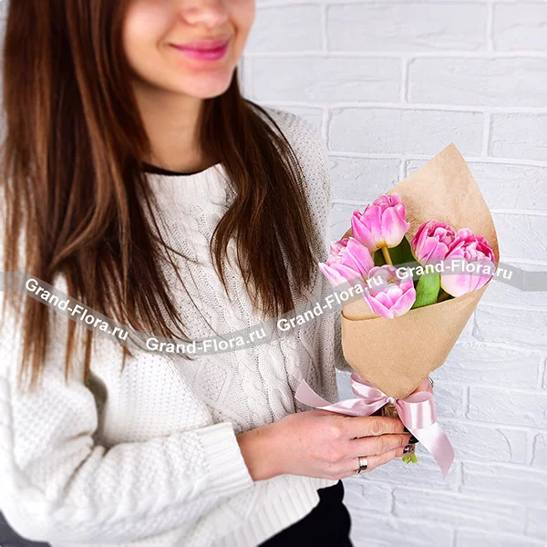 Только ты - букет из 5 розовых тюльпанов